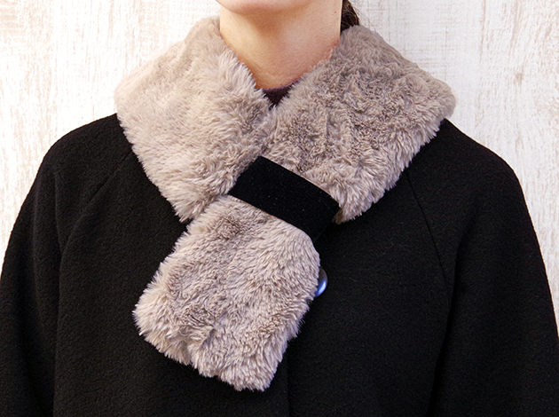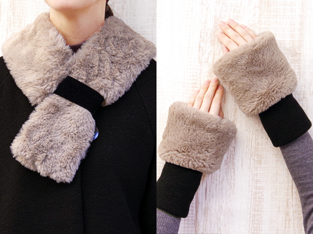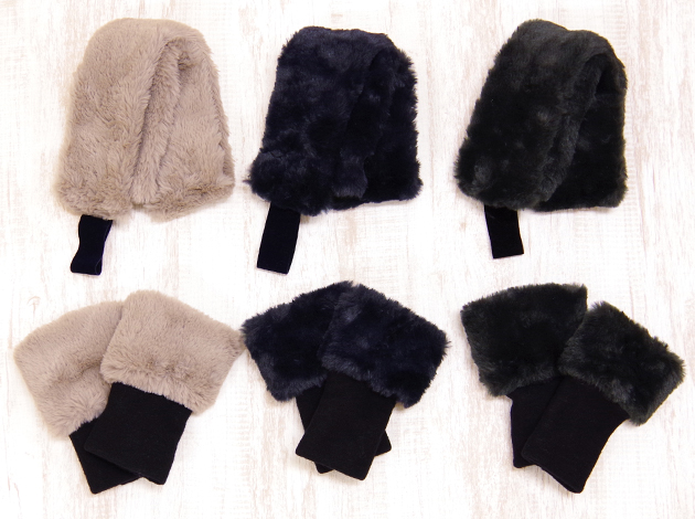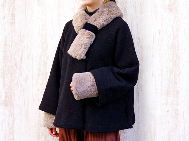 お顔や素肌に触れても優しい着け心地の上質エコファーで作る衿巻きとカフス。