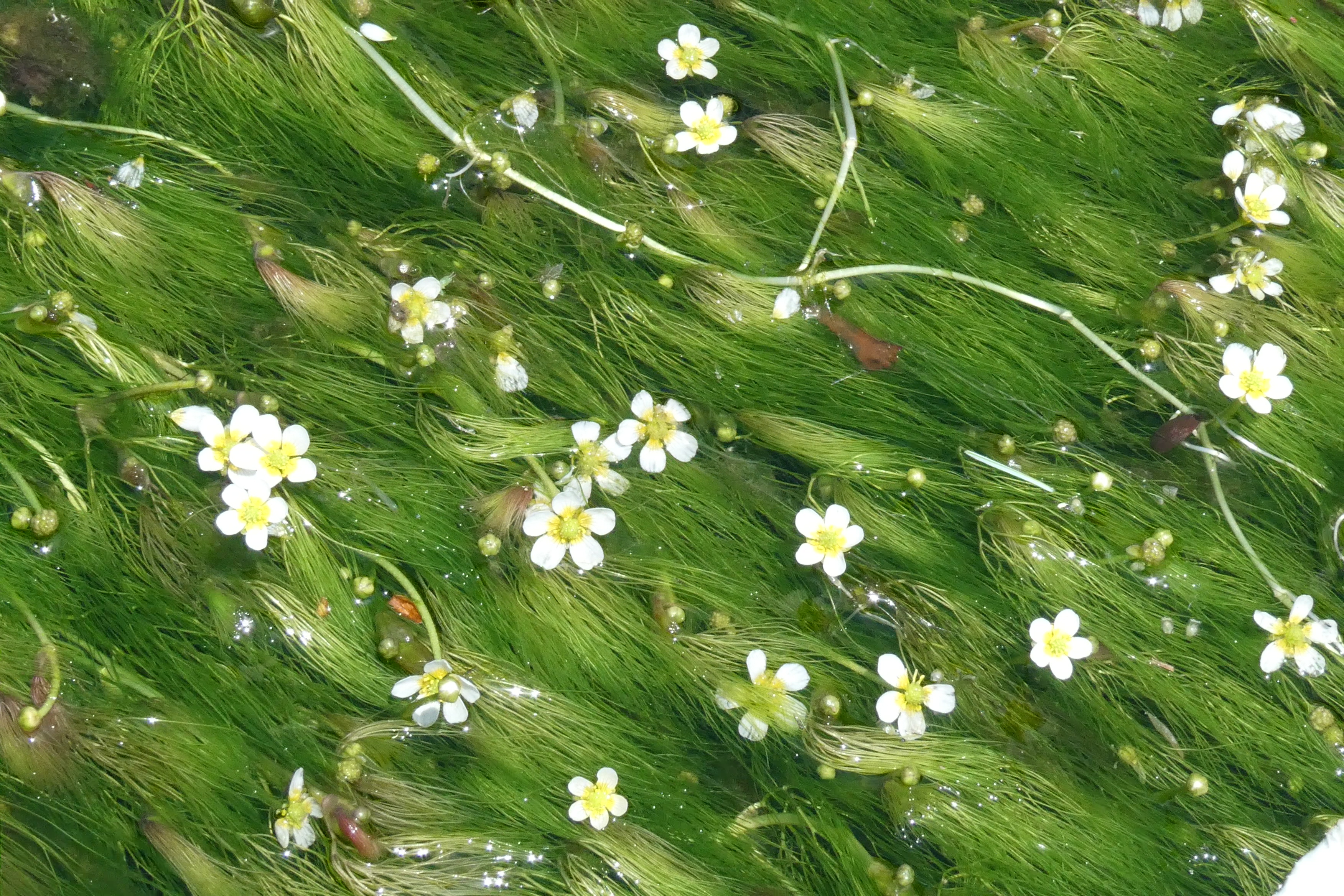 梅花藻はキンポウゲ科の淡水植物。梅の花に似た白い可憐な花が川の中で漂うように咲く。水温17℃以下の清流にしか育たず、全国でも生育場所が限られている。川は生活用水、農業用水として利用され、水辺環境の良さから子供の遊び場、地域の安らぎの場となっている。