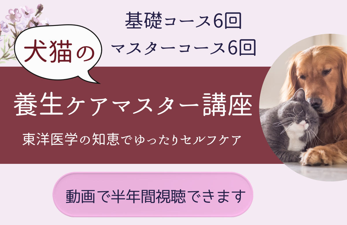 この講座は、そんなお悩みを抱えた飼い主さんに東洋医学の知恵を学び、犬猫の養生ケアの達人になっていただくことを目的としています。