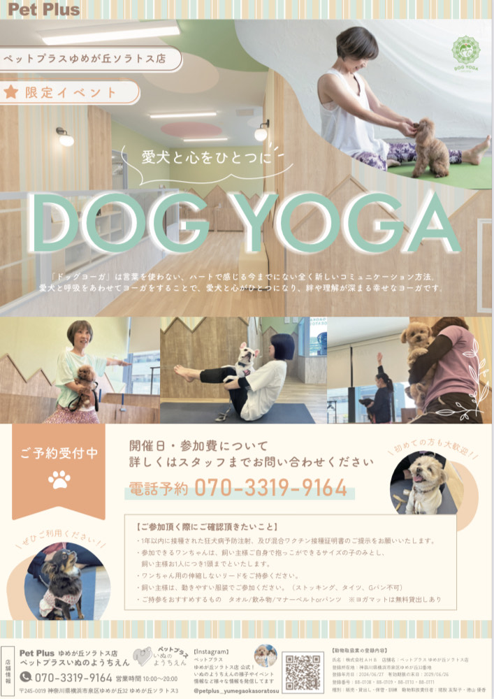 ・ワクチンプログラムが完了している子がご参加いただけます・ドッグヨーガの前にわんちゃんのおトイレを済ませておきましょう