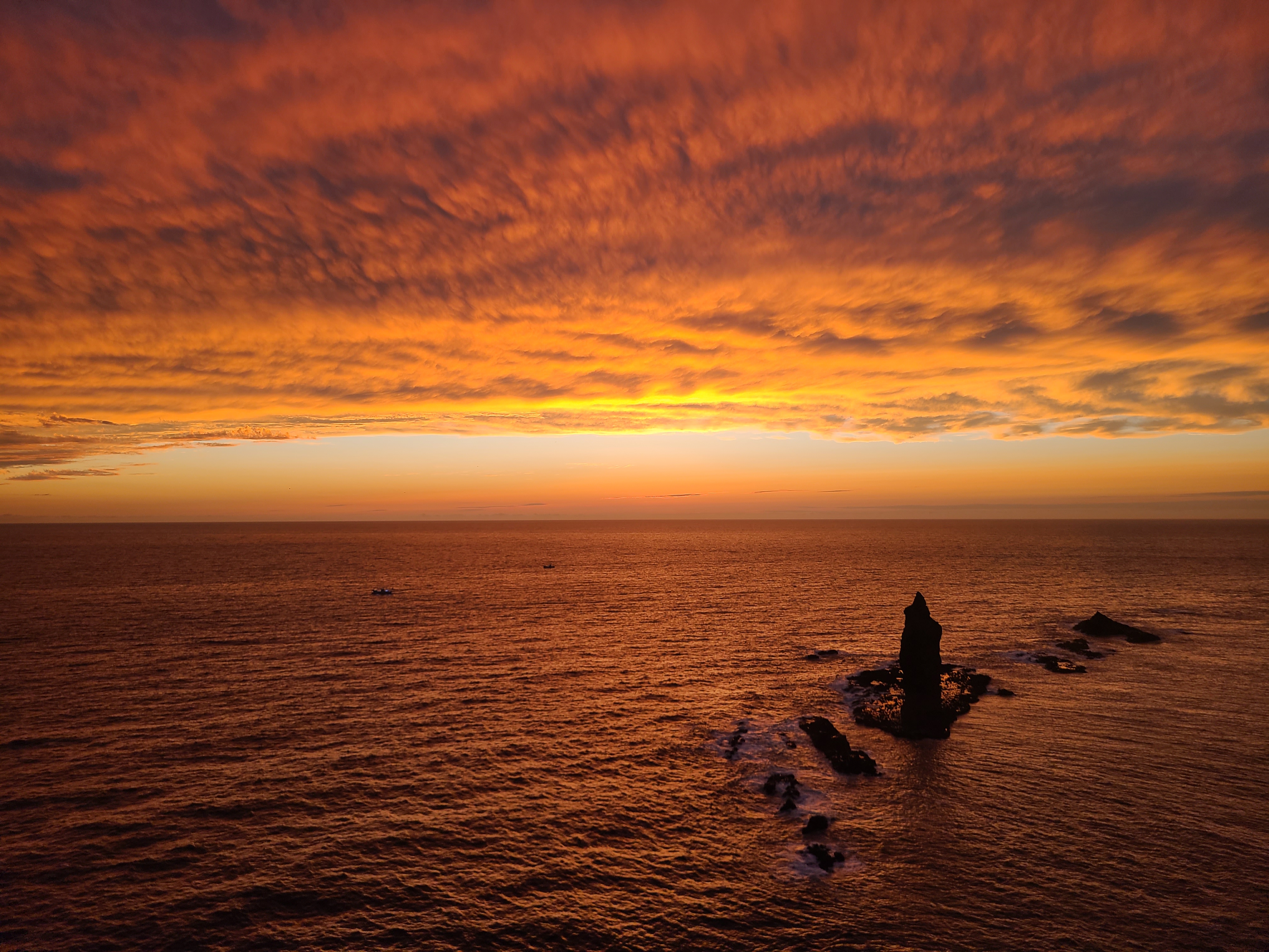 17:30 【第三部】神威岬の先端に到着です。大海原に沈みゆく燃えるような夕陽、灯台の光が点灯するエメラルドタイム、海に浮かぶ漁火が揺らめき出す時間…夜に移りゆくロマンチックな瞬間を360℃パノラマで楽しみます。