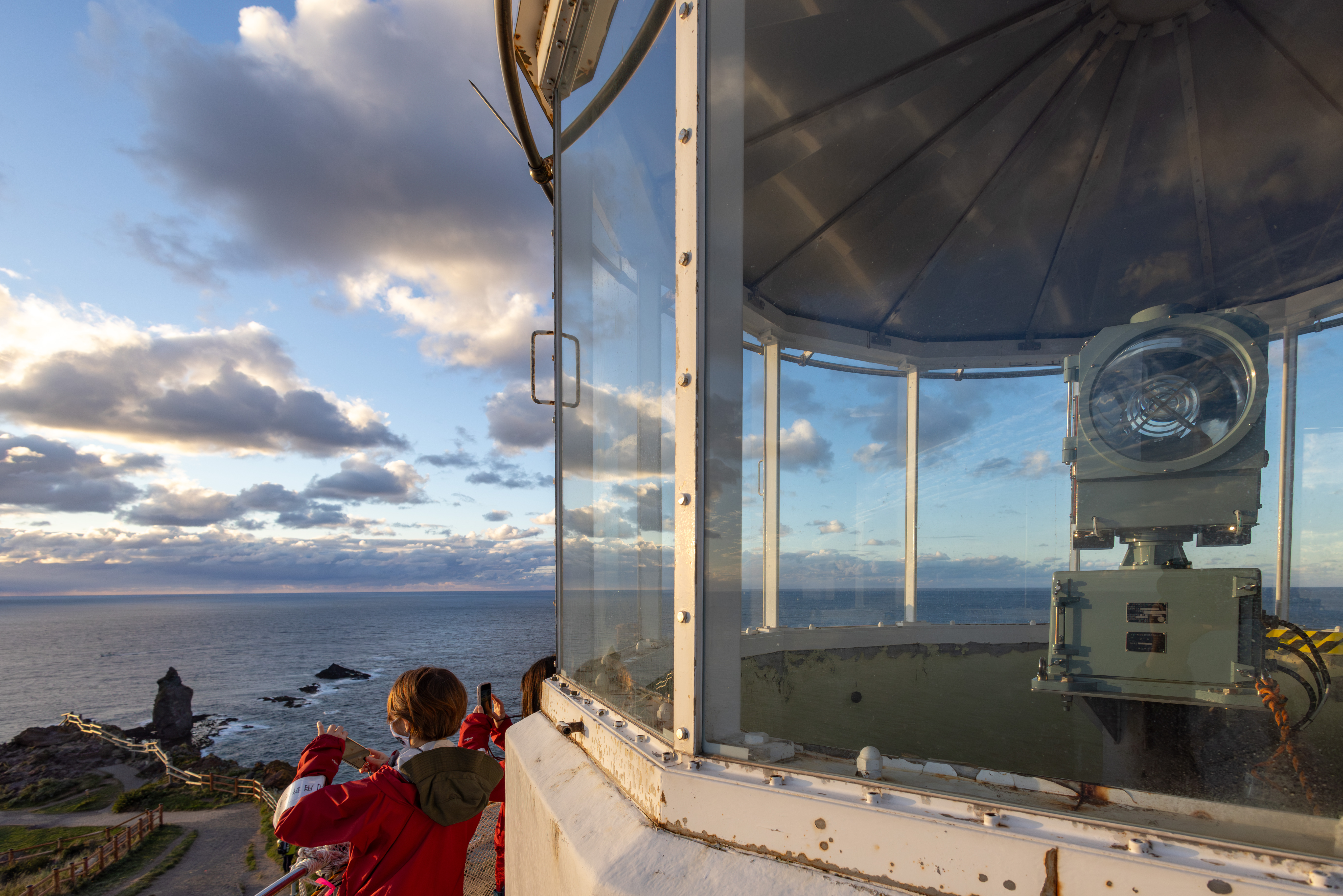 17:42 【日没予想】日没とともに点灯する神威岬灯台の内部を特別に参観します。夜間稼働している灯台にのぼれるのは、本ツアー参加者だけの特権です。