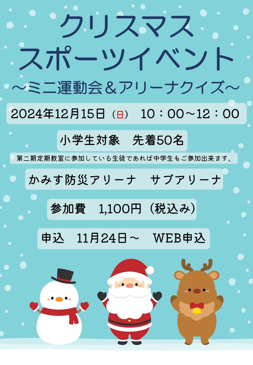 ※保護者・ご兄弟は、観覧席で見学となります。※第二期定期教室に参加している生徒であれば中学生もご参加出来ます。