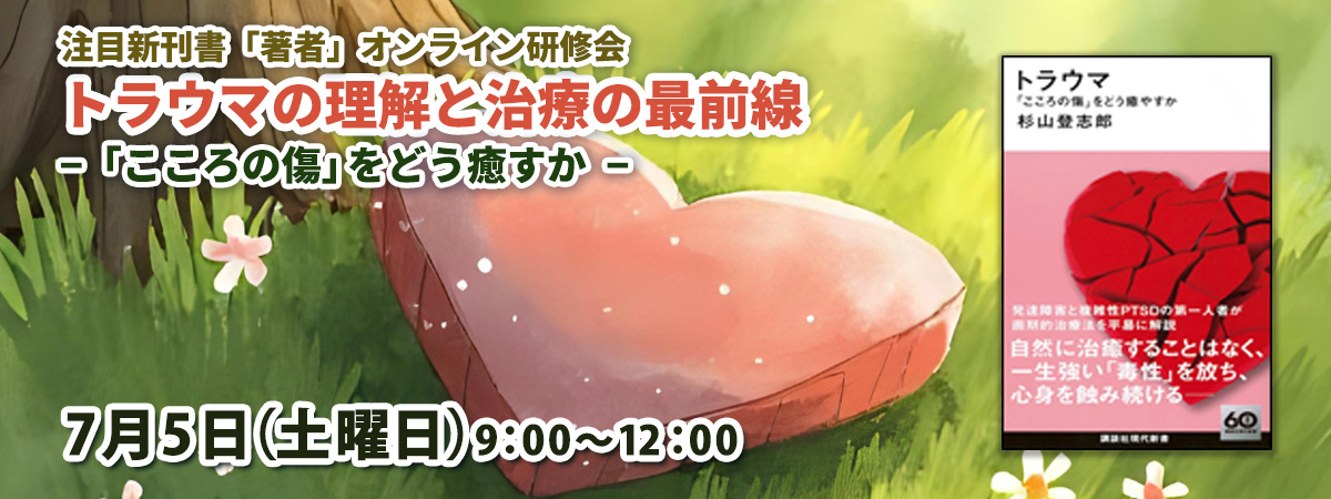 そこで、臨床心理iNEXTでは、7月5日(土)午前中に<新刊書「著者」研修会>『トラウマの理解と治療の最前線』−「こころの傷」をどう癒すか−』を実施します。トラウマの新たな理解の仕方に加えて、杉山先生が開発した、安全なトラウマ処理の方法である「T Sプロトコール」及び「T S自我状態療法」の解説をしていただきます。多くの方にトラウマの問題の重要性と、その治療援助の方法を学び機会になればと思っております。