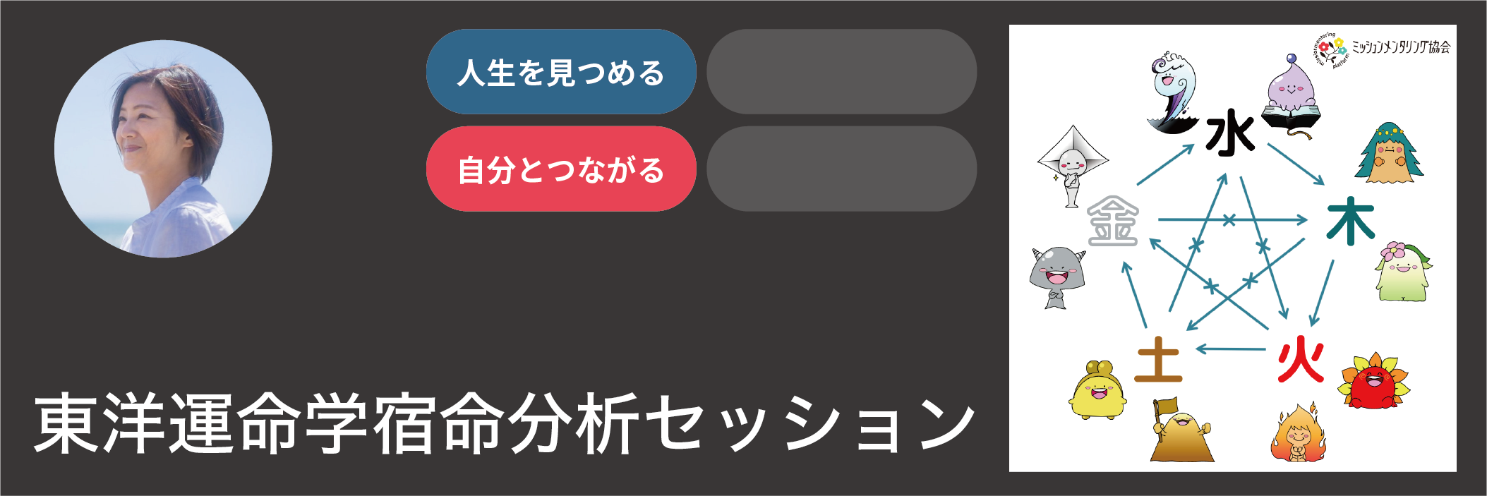 東洋運命学に出会い、持って生まれた宿命を知り、努力と環境によって自分で運命を切り拓いていくことができるということを知りました。そして、自分軸(=人生ミッション)を明確にすることで、仕事の進め方や生き方までも変えていくことができること、そういう力があることにとても惹かれました。