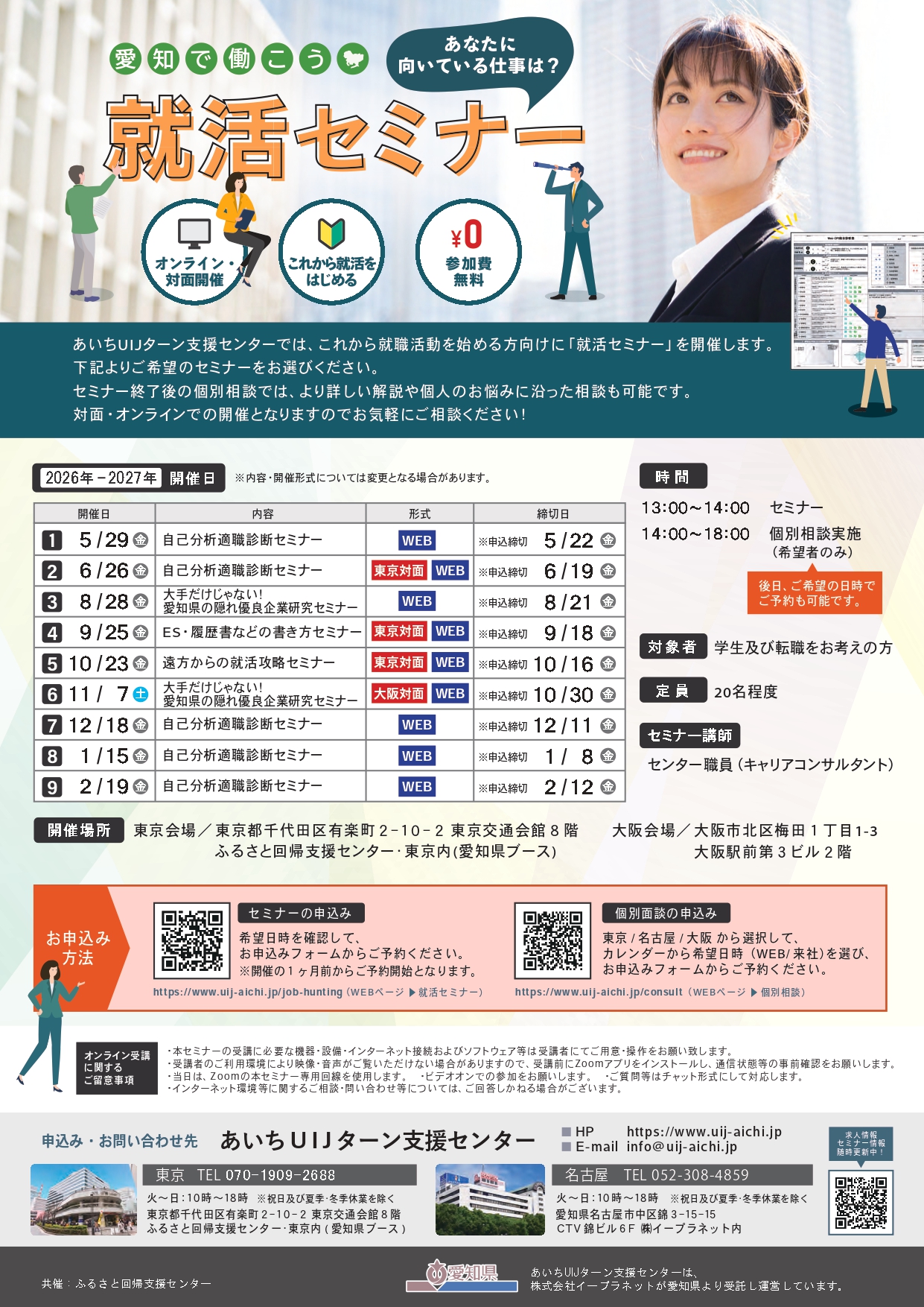 ※本セミナーは、愛知県への就業を目的とした方を対象にしております。