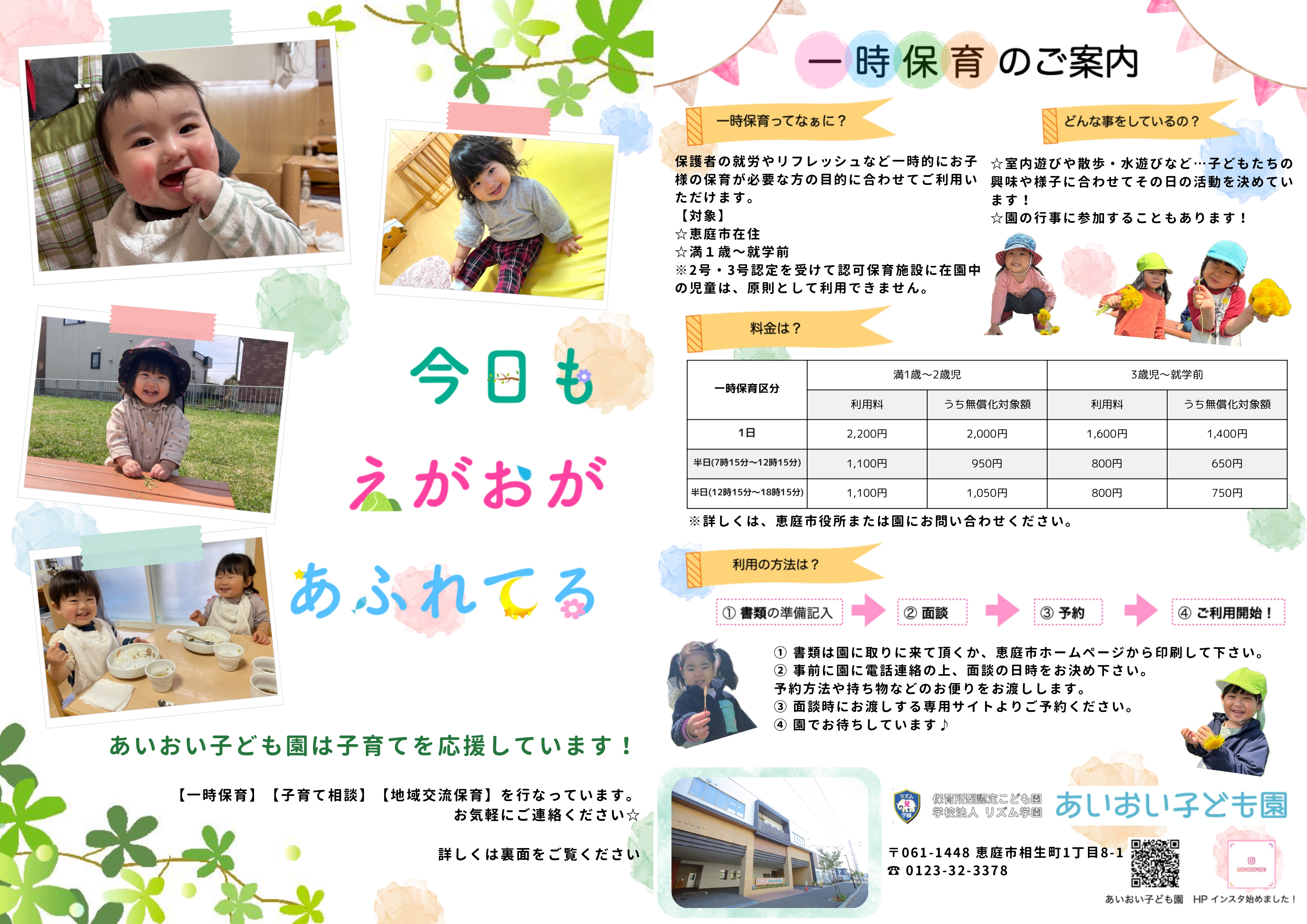 一時保育の予約ページではありません。ご利用の方は、面談の際に予約サイトをお知らせ致します。