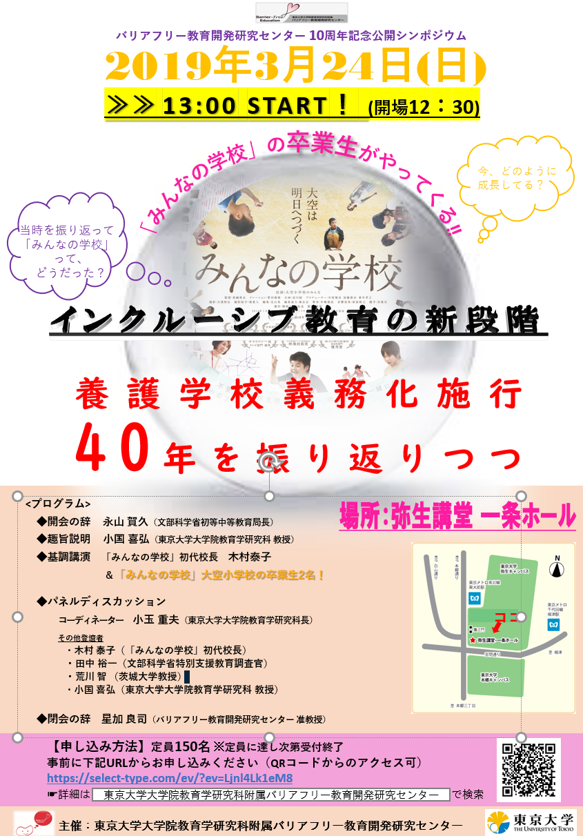障害者権利条約の批准以降、日本の学校教育はインクルーシブ教育として、どの子も地域の学校で学ぶことが求められるようになりました。当日は、まず前半部分で、大阪市立大空小学校の初代校長木村泰子先生と大空小学校の卒業生をお迎えし、「みんながつくるみんなの学校」としての大空小学校についてお話をいただきます。それを踏まえて後段では、特別支援教育の専門家の荒川智先生や文部科学省の特別支援教育の田中裕一調査官をお迎えし、インクルーシブ教育が現時点でどんな課題に直面しているのか、さらにはどんな方向に転換する必要があるのかを議論する予定です。