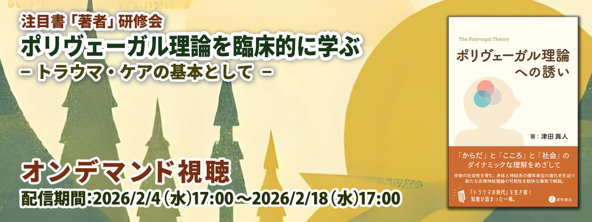 したがって、ポリヴェーガル理論は、近年注目されている複雑性PTSDや発達トラウマ等を理解し、問題の改善に向けての指針を得るのに役立ちます。そこで、臨床心理iNEXTでは、トラウマ臨床の基本理論としてポリヴェーガル理論を学ぶ研修会を開催します。講師は、我が国におけるポリヴェーガル理論の第一人者で、『ポリヴェーガル理論への誘い』(星和書店)の著者である津田真人先生です。