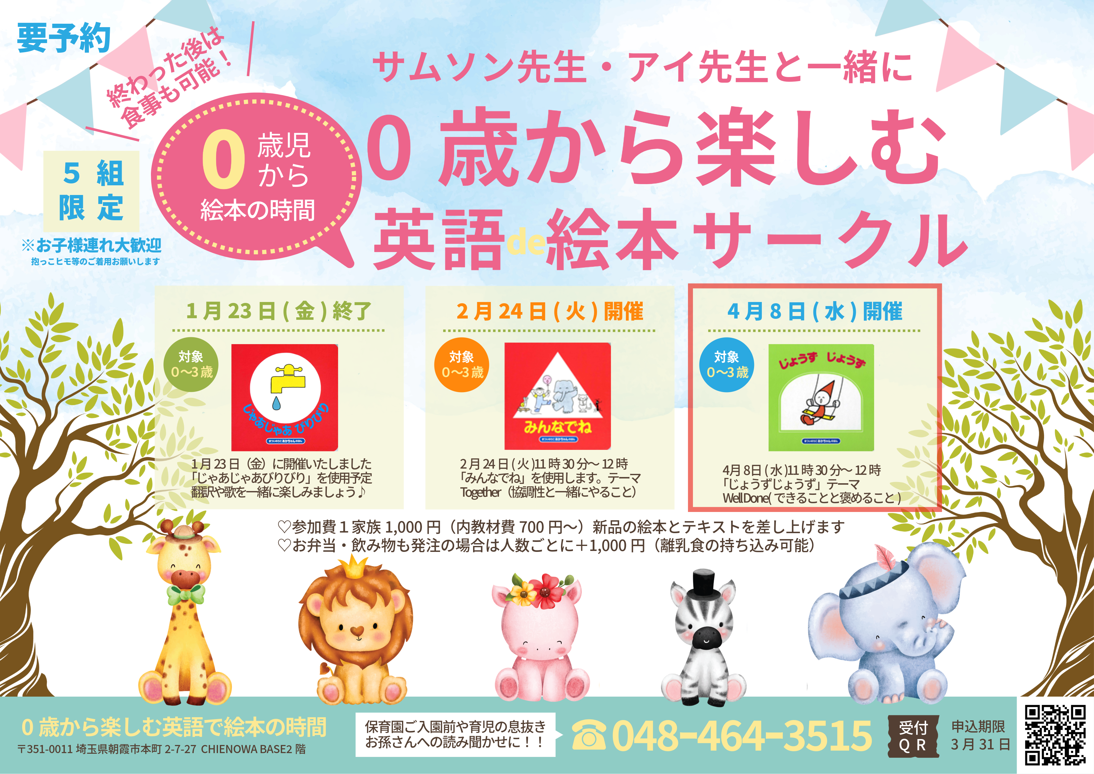 第3回の開催日は4月8日(水)11時30分~12時(ごはん希望の方はその後30分~1時間)です。