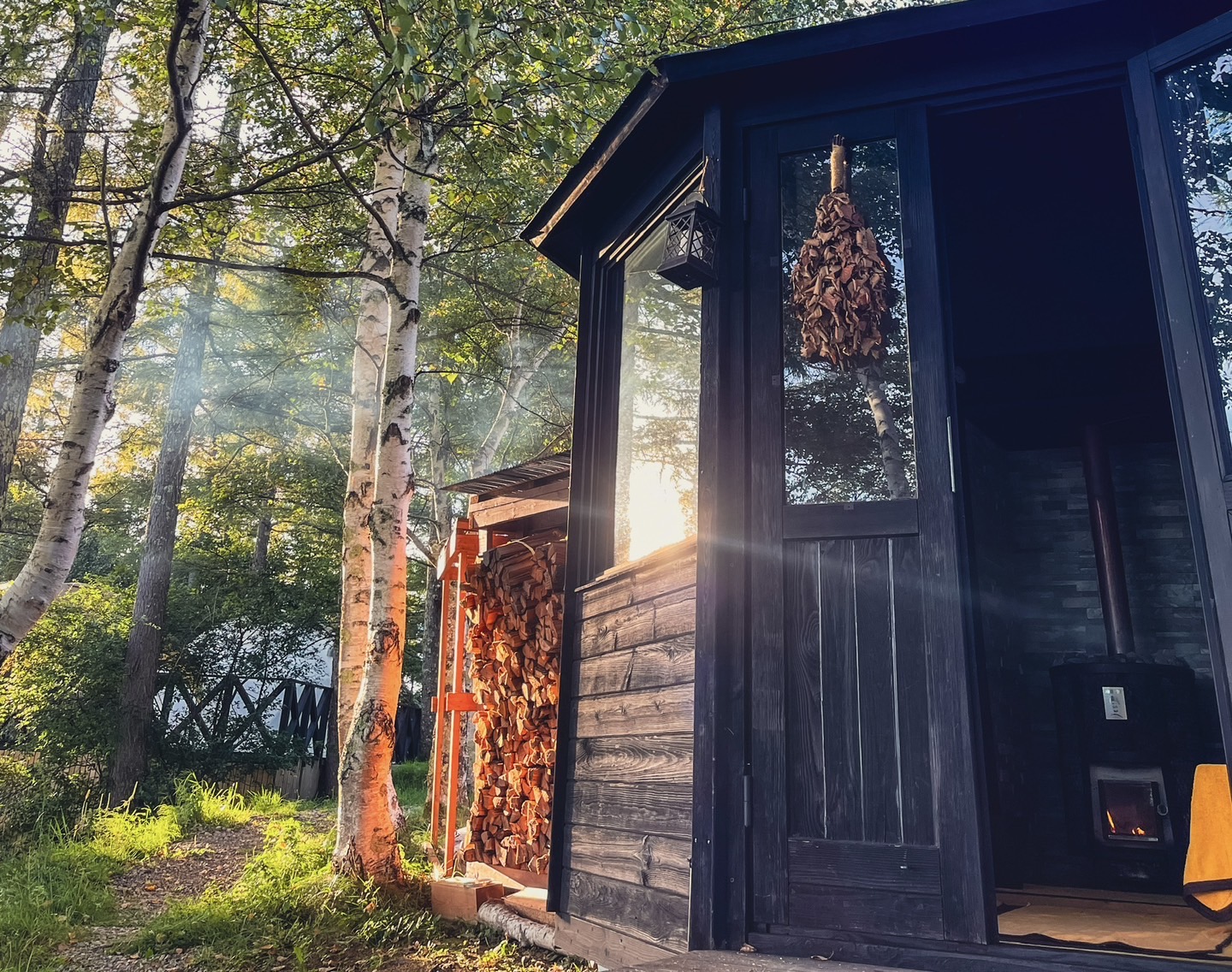 蓄熱式ストーブを備えた木製ログサウナで、やわらかく包み込むような熱と深いリラックスへと導く時間をご提供します。