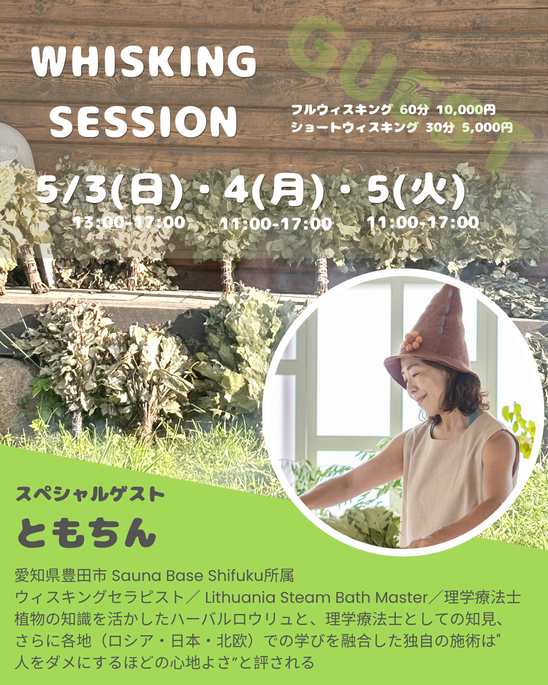 ✨5/3・5/4・5/5:ともちんによるウィスキング<別料金>