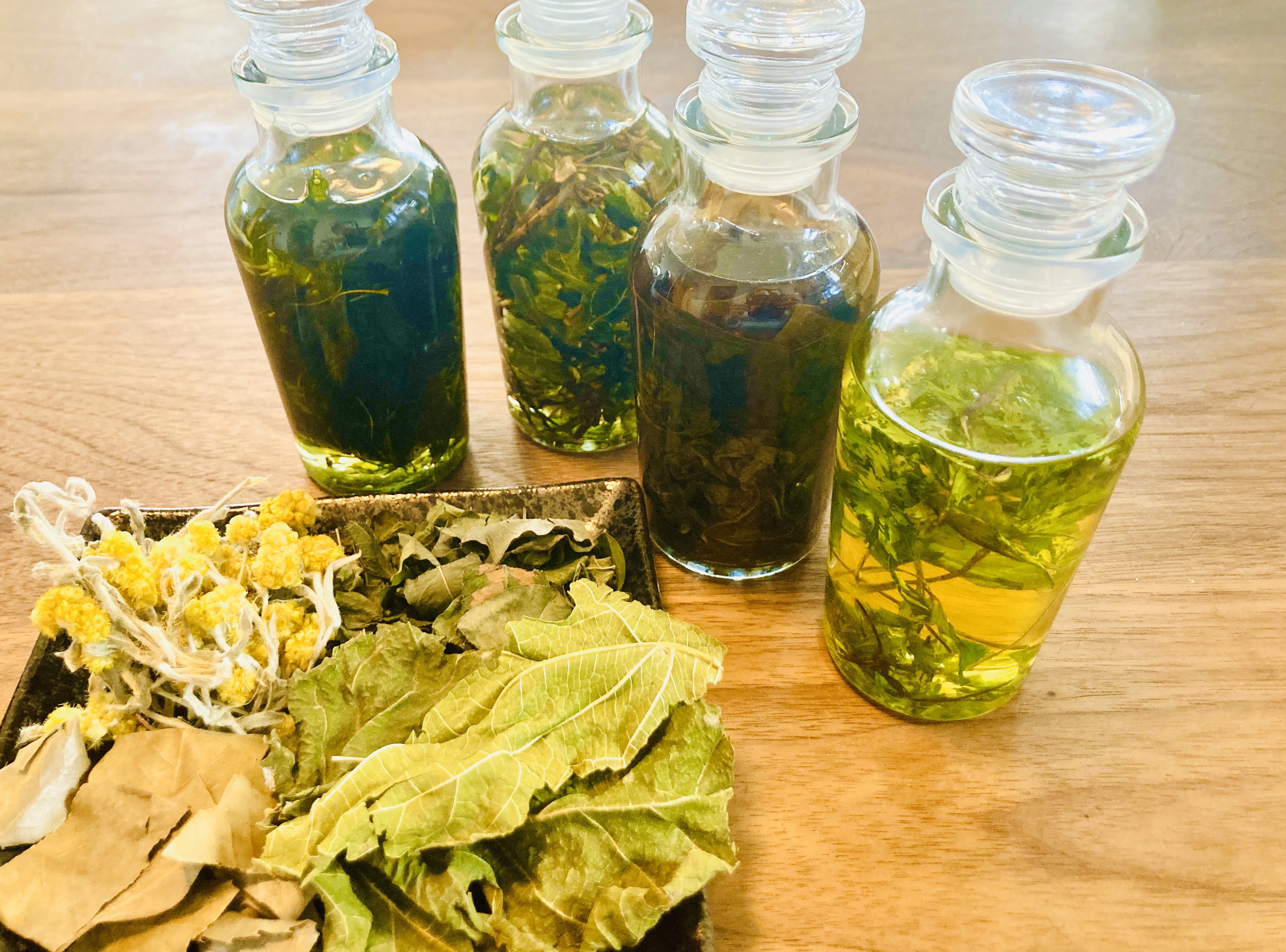 薬草を漬け込んだ植物オイルを使用して保湿クリームをつくります。
