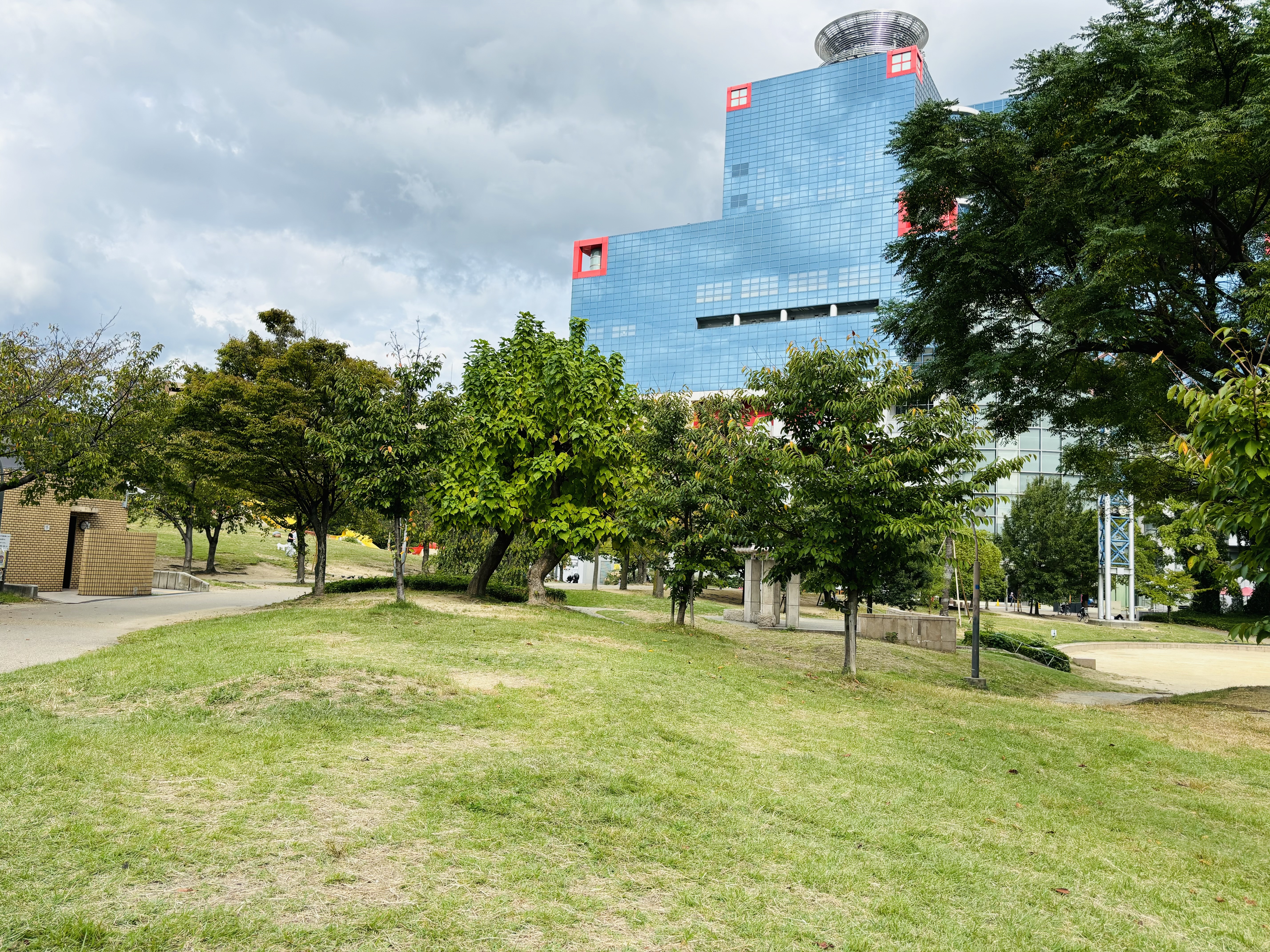 大阪・扇町駅すぐの『扇町公園』、目の前には関西テレビ・園内にプールがある大きな公園です。
