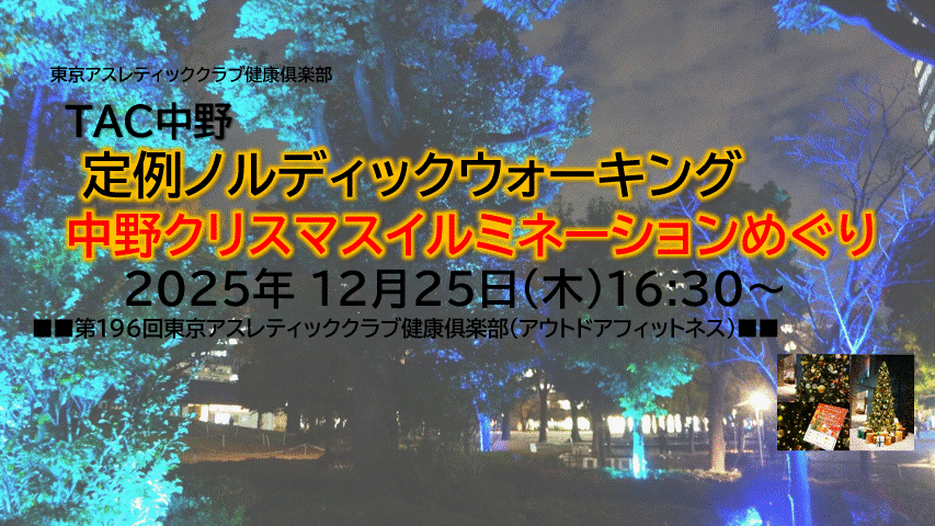 『TAC中野を拠点に中野を楽しくノルディックウォーキング~中野クリスマスイルミネーションめぐり~』(初めての方も歓迎)