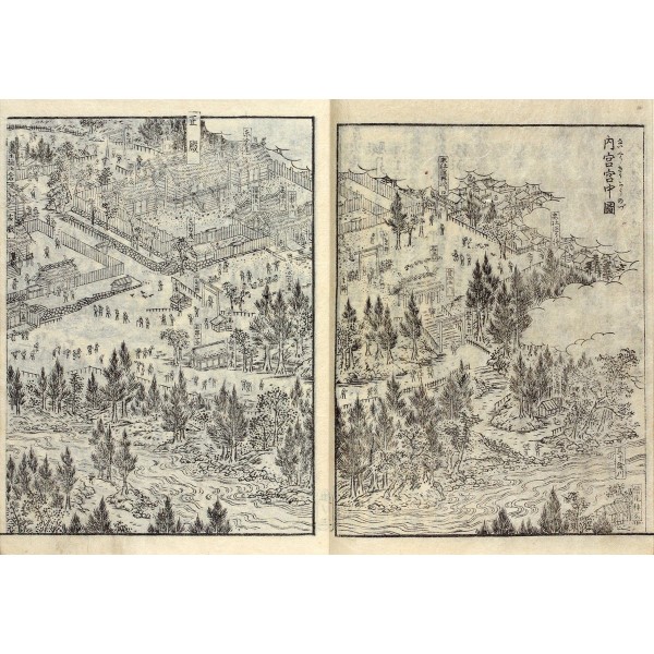 これらの関心に応えたものが、名所風景を描いた浮世絵や風景図を挿絵とし「名所図会」と呼ばれた地誌などの出版でした。三重でいえば、宿場や街道風景を描いた歌川広重の東海道五十三次のほか、二見浦などが浮世絵に描かれました。