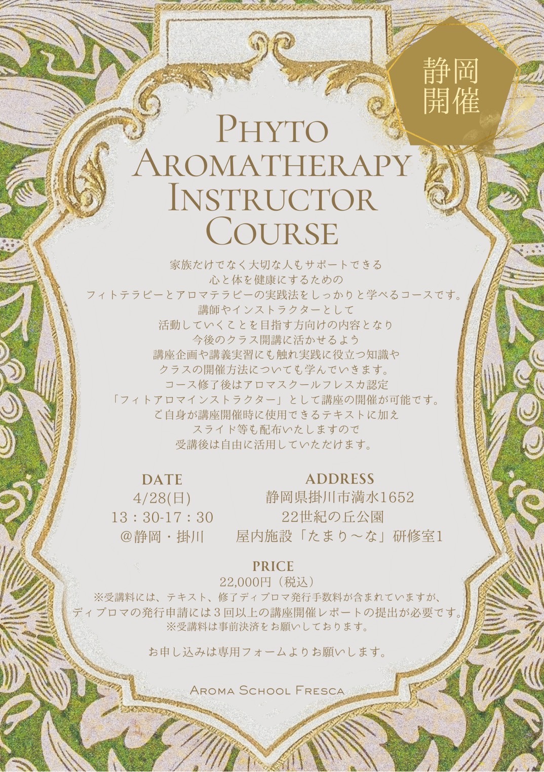 コース修了後は、アロマスクールフレスカ認定「フィトアロマインストラクター」として講座の開催が可能です。
