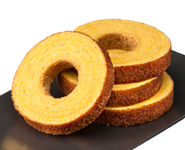 北菓楼独自の窯で一層一層時間をかけて丁寧にじっくりと焼き上げるからこそ生まれる、しっとり感が印象に残るバウムクーヘンです。