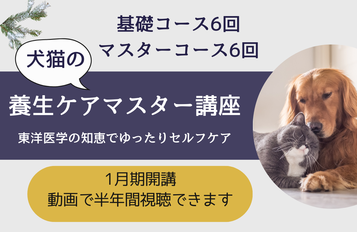 この講座は、そんなお悩みを抱えた飼い主さんに東洋医学の知恵を学び、犬猫の養生ケアの達人になっていただくことを目的としています。