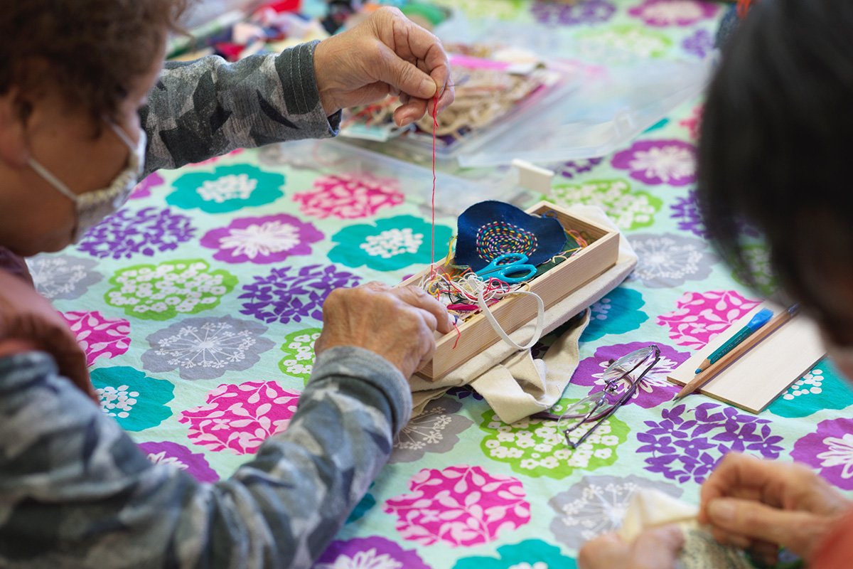 70代から90代のおばあちゃんたちが、ひとめひとめ丁寧に刺した雑貨を販売しています。
