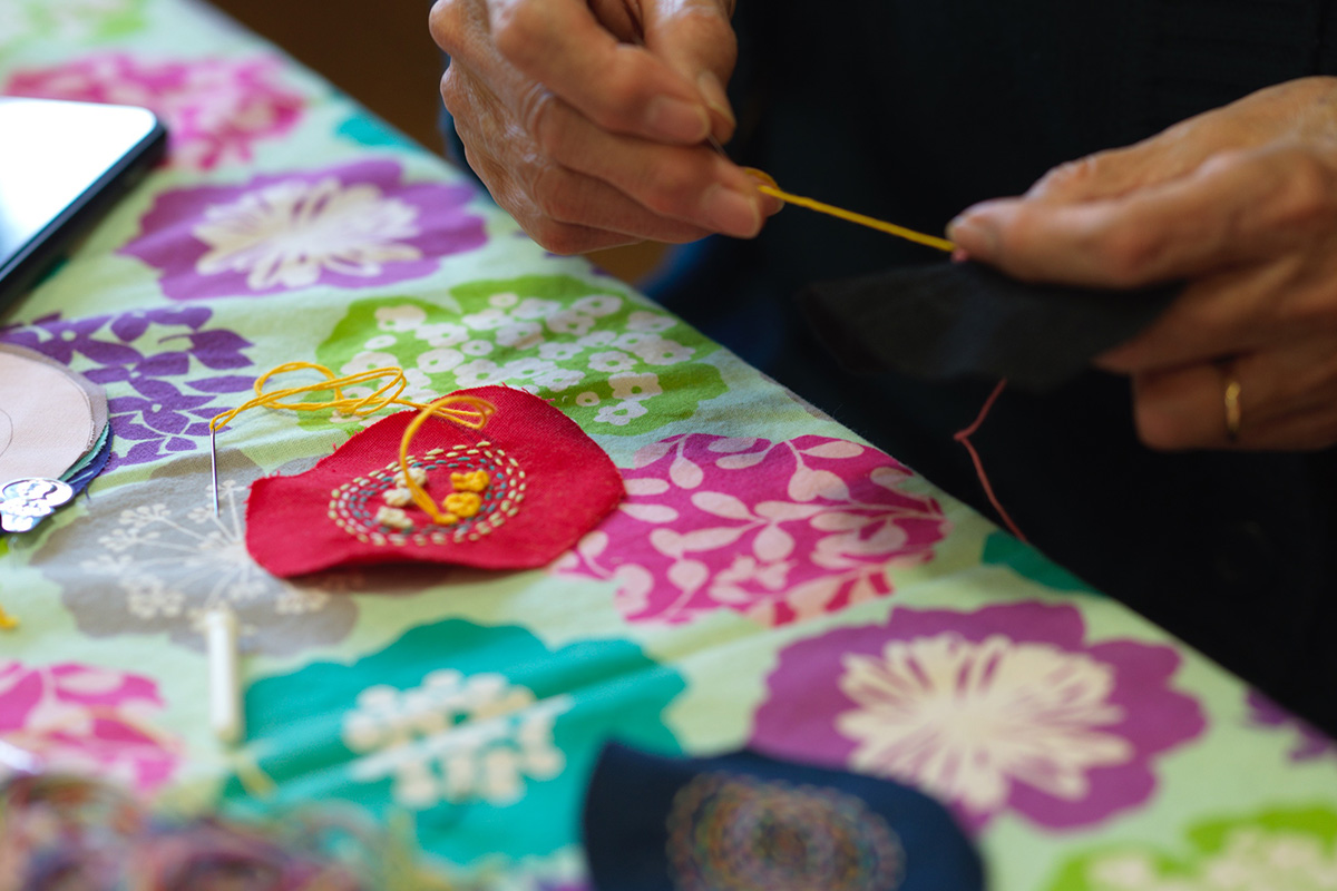 ひと針ひと針、丁寧に刺していく刺繍の時間。