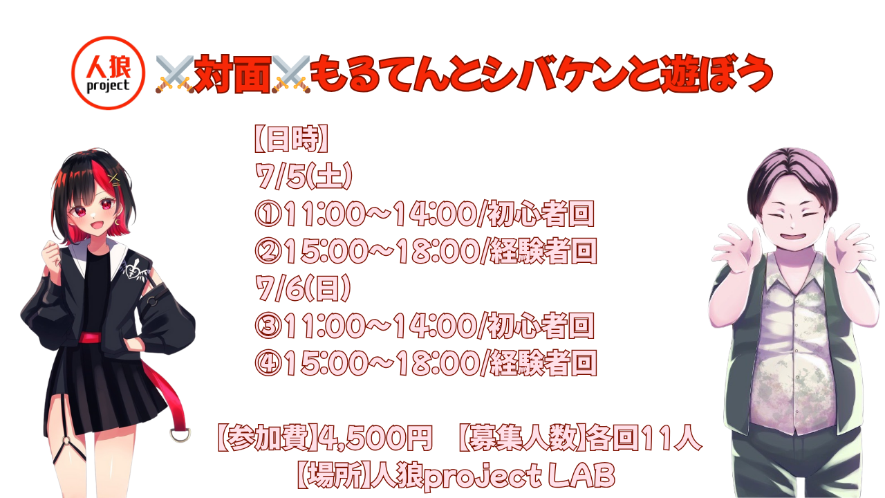 【対面人狼】7/5(土)・7/6(日)もるてんとシバケンと遊ぼう