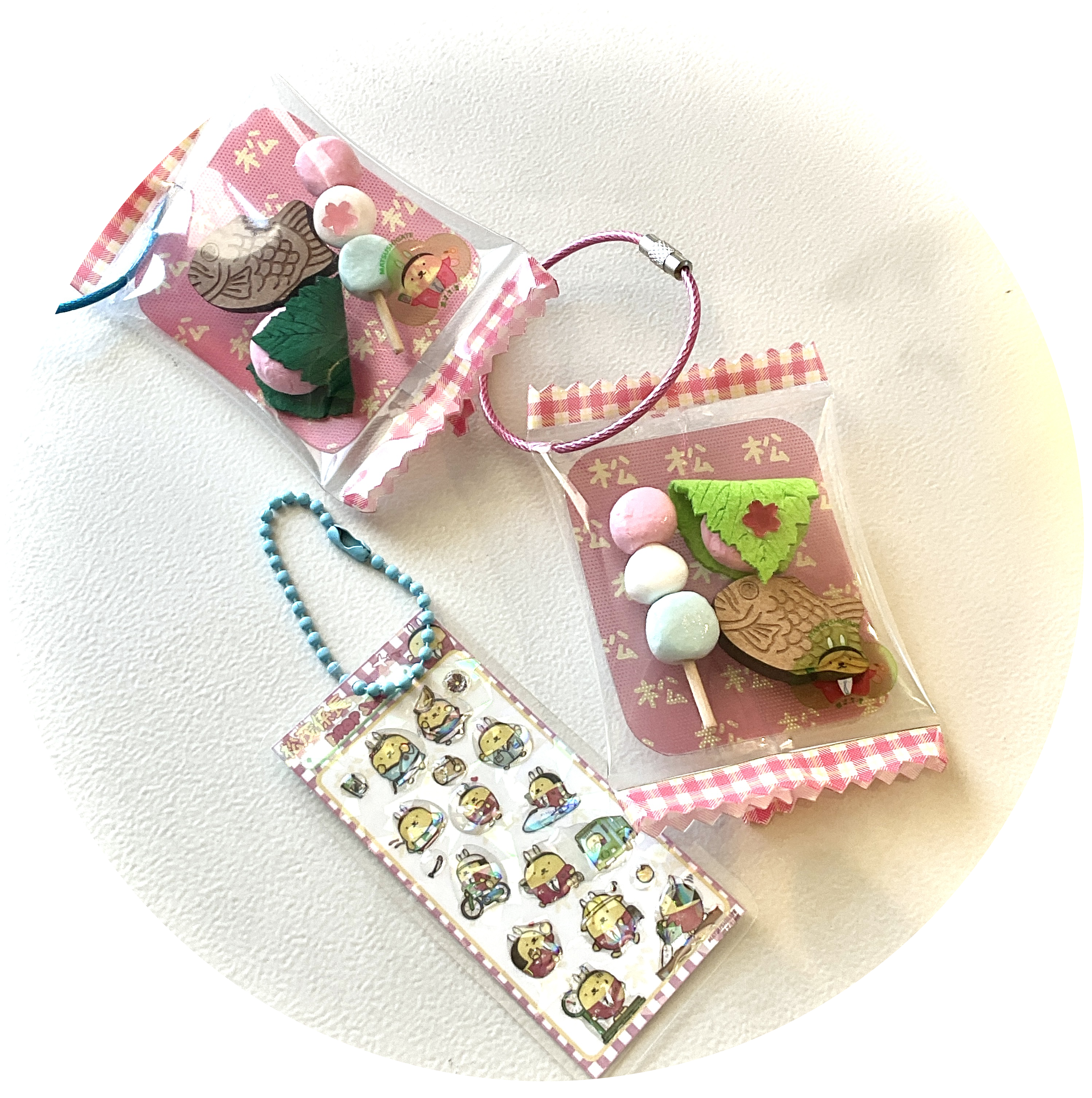 【春の和菓子詰め合わせチャーム】は、お花見団子、たい焼き、桜餅からお好きなものを3個選んでいただけます!