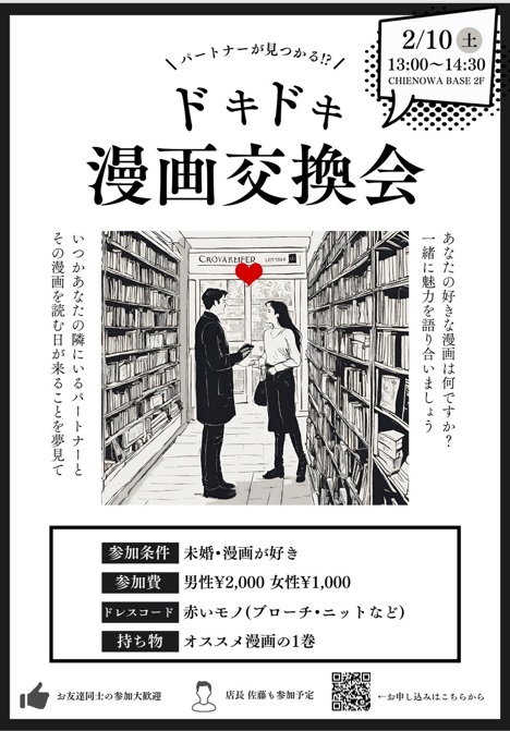 カップリングが成立したらお互いが持ってきた漫画と連絡先を交換します。