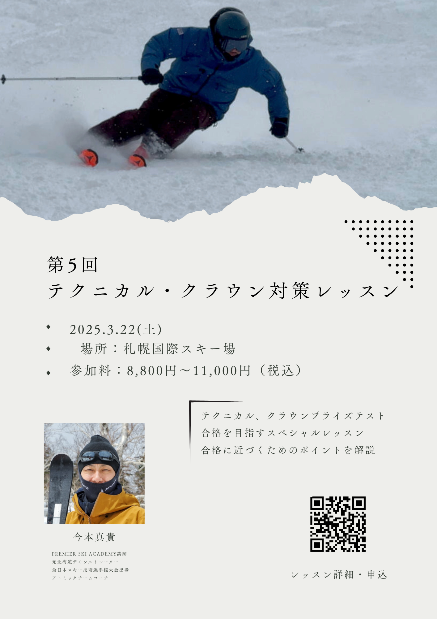 ▷PREMIER SKI ACADEMY テク・クラ対策レッスン第五弾を、今本真貴が行います。