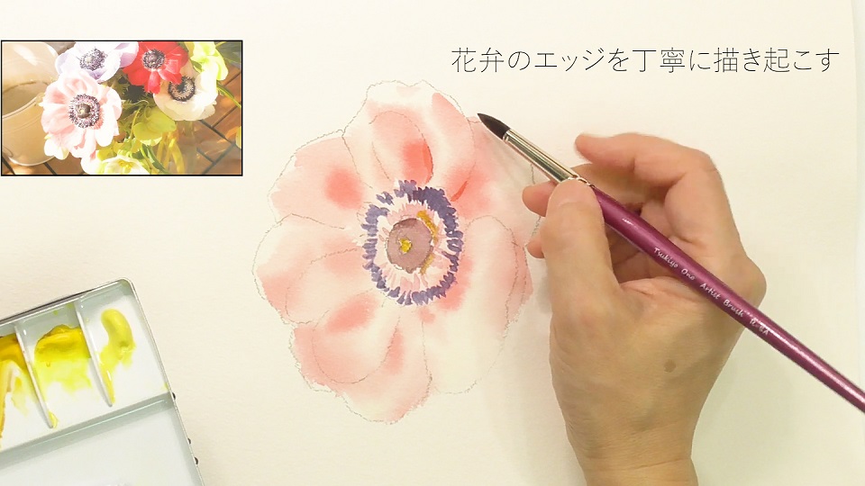形は単純ですが、その分、花の特徴を捉えて描き込む必要があります。花びらの柔らかさ、薄さを丁寧に観察して描き込んでいきましょう。