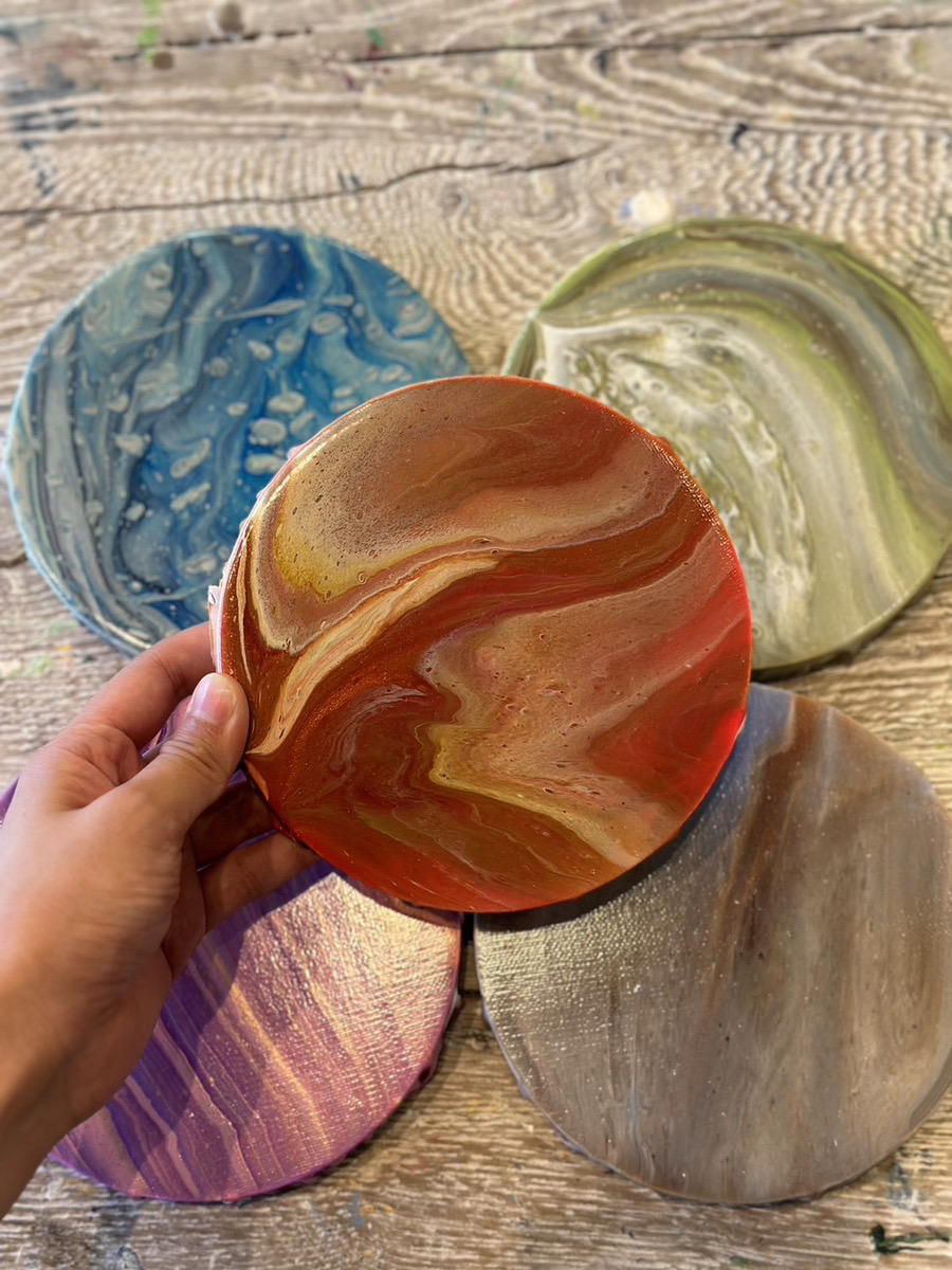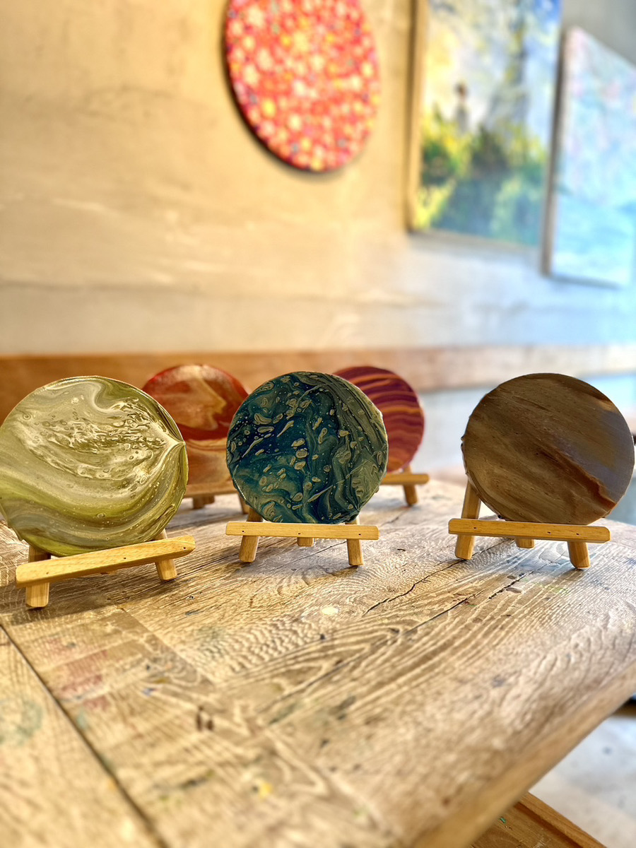 通常のラウンドたらしこみのコースでは直径30cmのキャンバスを使用していますが、 今回のイベントでは直径15cmのミニミニキャンバスを使用していきます。