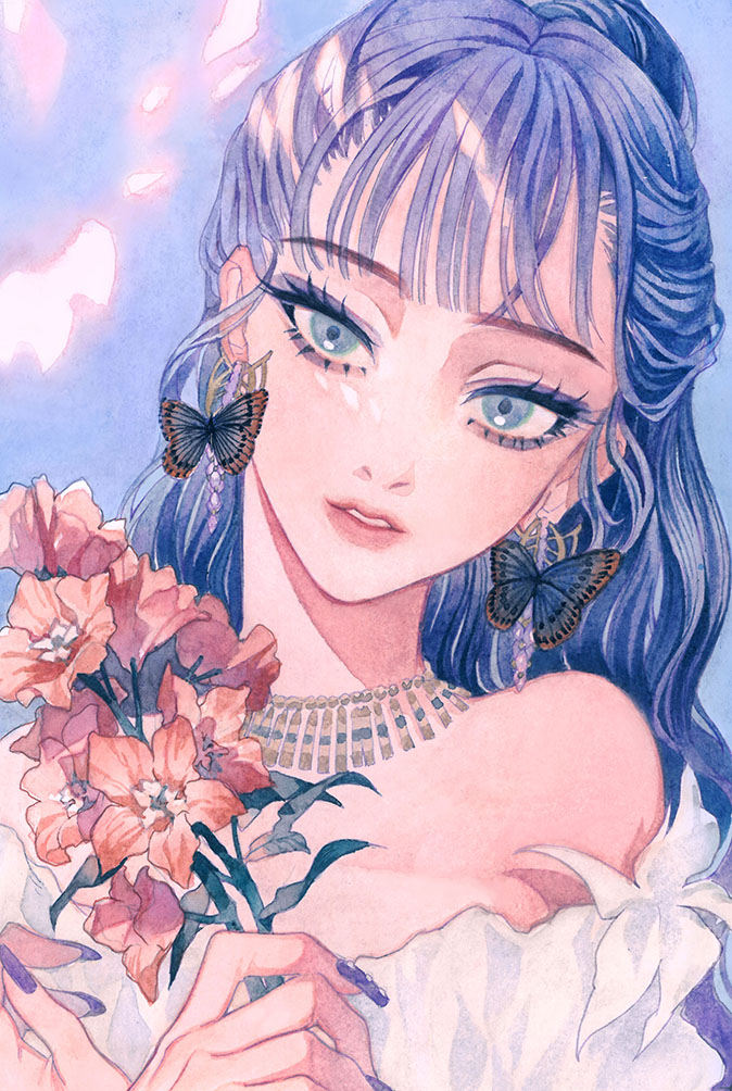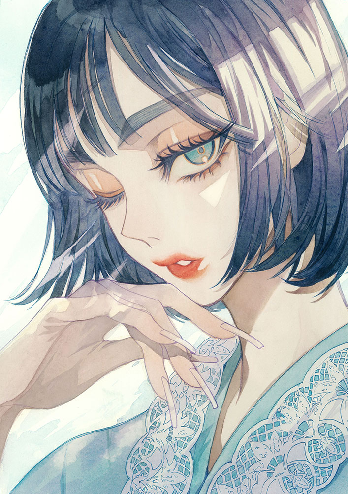 透明水彩をはじめ、アナログ・デジタルを問わず様々な画材で美麗な人物像を描き、レトロ、耽美、ダーク、ポップ、SFなど作品ごとに多様な世界観を生み出すイラストレーター。