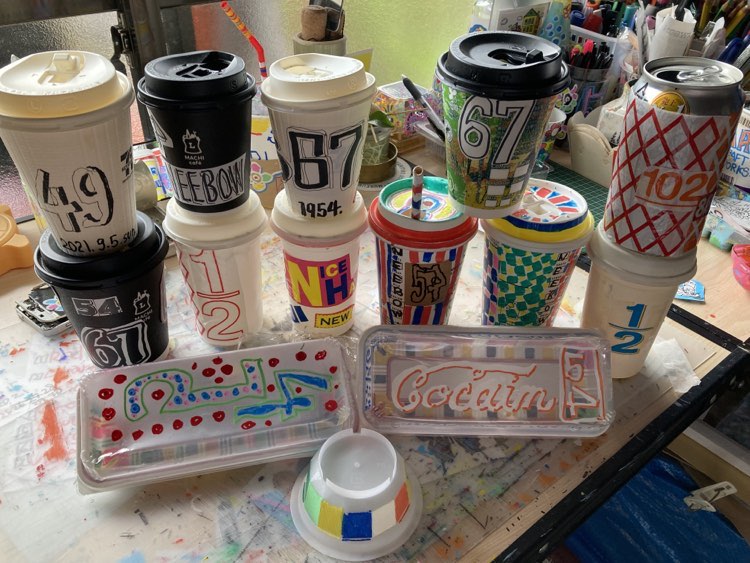 キャンパスに限らず、カレンダーの裏や、段ボール、お菓子の箱の裏など、いろいろな画材に描くことが得意です。