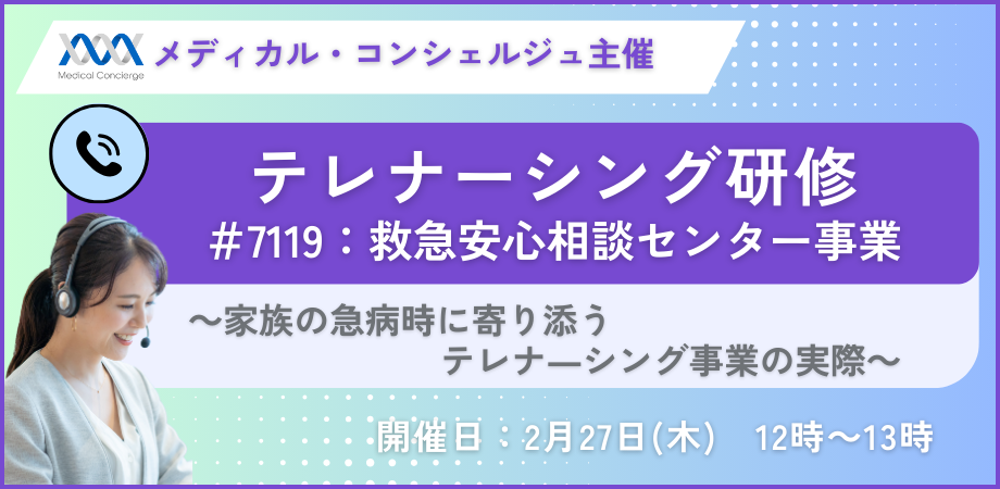 ご好評のお声を多くいただきましたテレナーシング研修から#7119編を開催いたします!