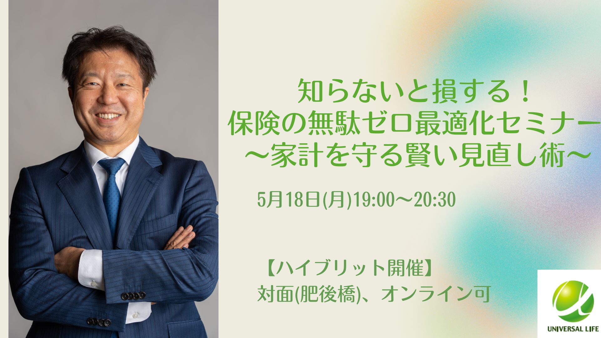 注意事項本セミナーはFP(ファイナンシャルプランニング)の範囲内の内容は株式会社フューチャー・クリエイションとして具体的保険商品等の内容はユニバーサルライフ株式会社大阪第8支社として行っております。