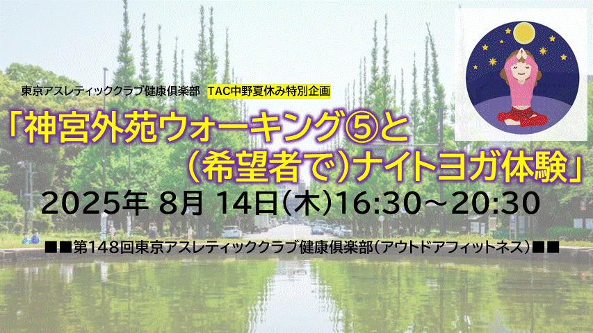 『神宮外苑ウォーキング⑤と(希望者で)ナイトヨガ体験』