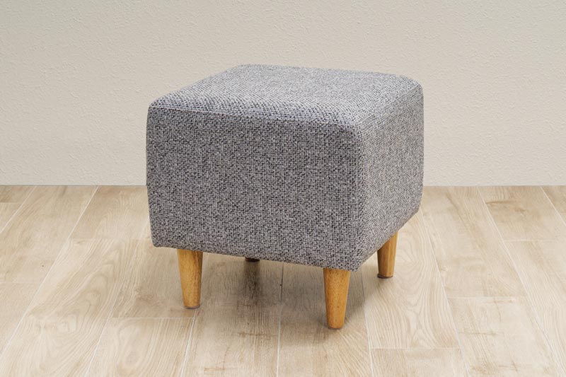 キューブ型のシンプルなスツール。リビングやキッチン、玄関など、置き場を選ばず重宝する定番アイテム。スツールの脚は2色から、生地は当日工場にある生地の中から選べます。※事前に生地の指定はできません。