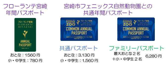 フローランテ宮崎の年間パスポートは全部で3種類!いずれも有効期間はご購入から1年間で、 期間中は何度でもご入園いただけます。