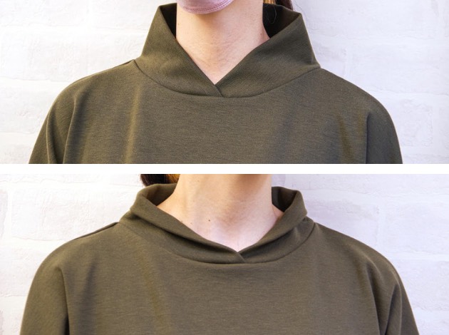 重ねえりは折り返すとフードがついているようにも見え、カジュアルに着こなすことができます。袖口の長めのカフスが程よいきちんと感を演出してくれます。