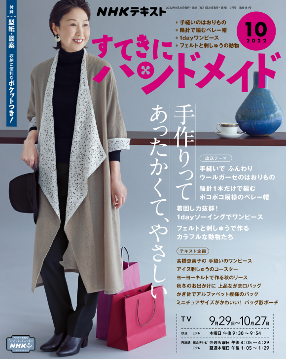 2022年 9月21日(木)発売のすてきにハンドメイド10月号(NHK出版)に掲載されている「重ねえりのあったかチュニック」のワークショップを開催します。