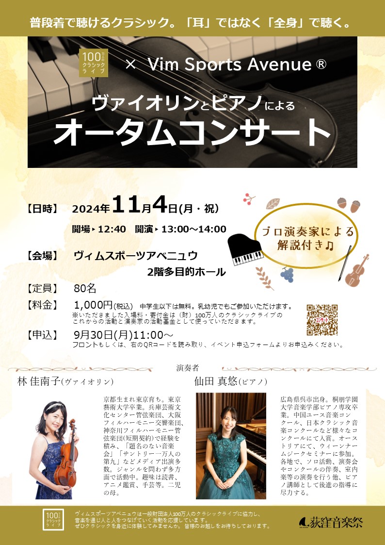 演奏家の奏でる音色を「ライブ」で感じてみませんか。感動を分かち合い、地域がつなが