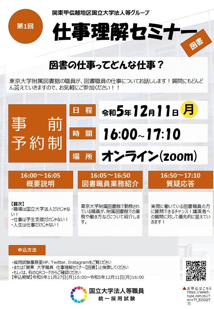 ・説明会の内容等に追加や変更が生じた場合は、このページでお知らせします。・申込受付開始は11月27日(月)15:00~12月11日(月)16:00(開始直前)まで受付いたします。