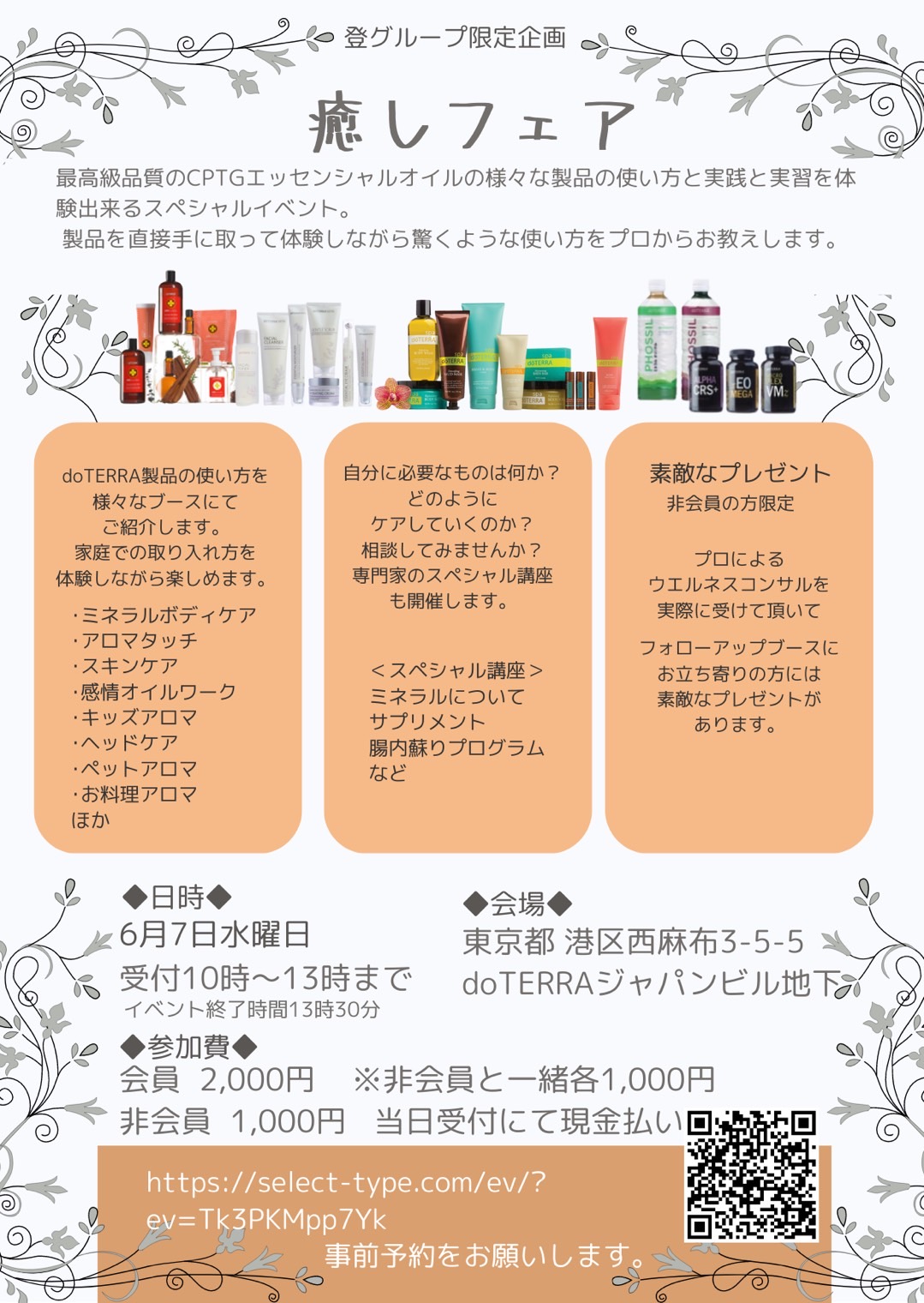 最高級品質のCPTGエッセンシャルオイルの様々な製品の使い方と実践を体験出来るスペシャルイベント。