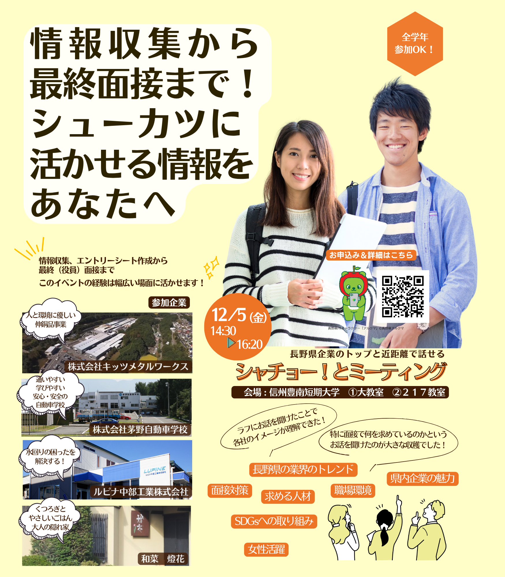 長野県内企業への就職に興味のある全学年の学生お問い合わせ