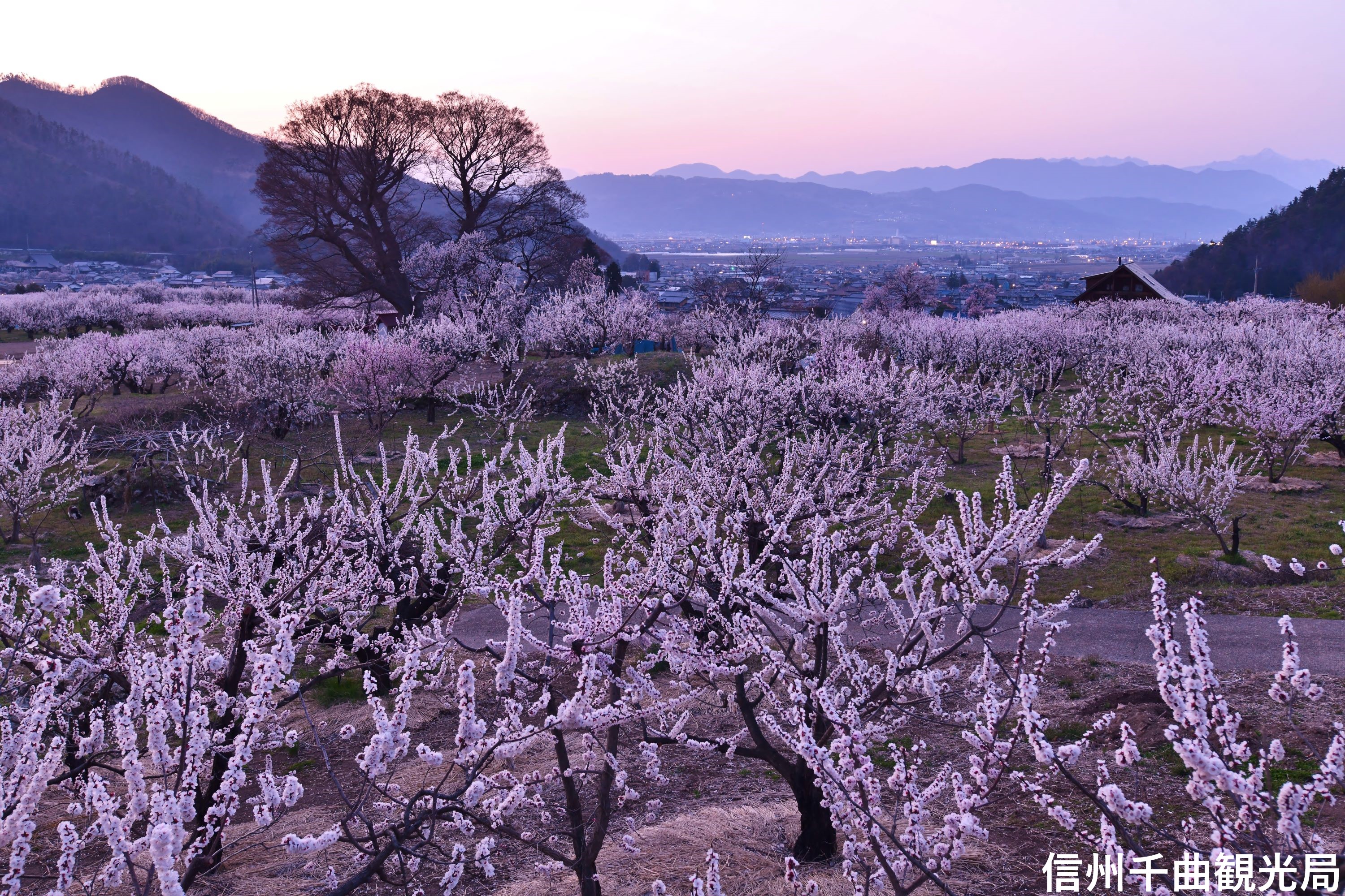 千曲市・あんずの里(混雑前、朝一番の気持ちのいい空気の中であんずの花鑑賞/約90分)