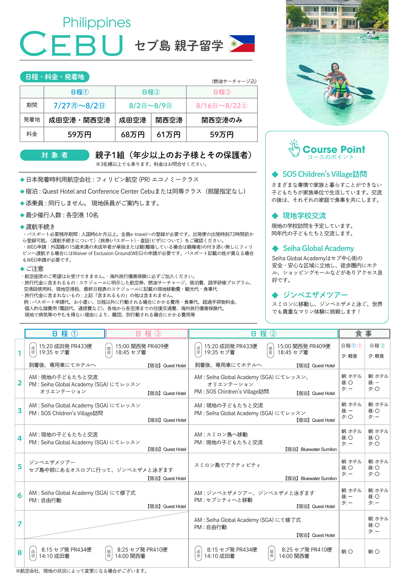 7/27出発 セブ島 親子留学7日間(成田・関西)