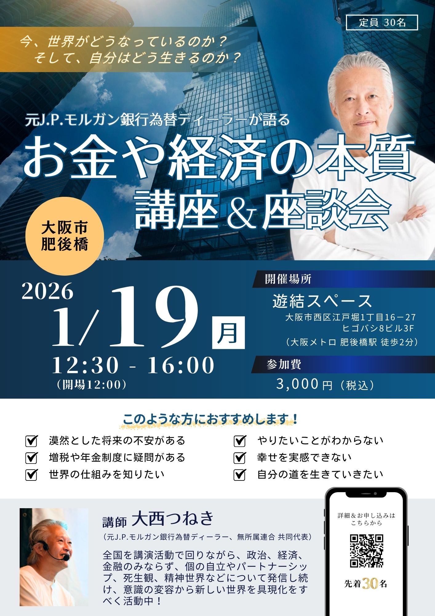 テーマ1. お金や経済の本質講座+座談会〜日本の状況や国家経営について