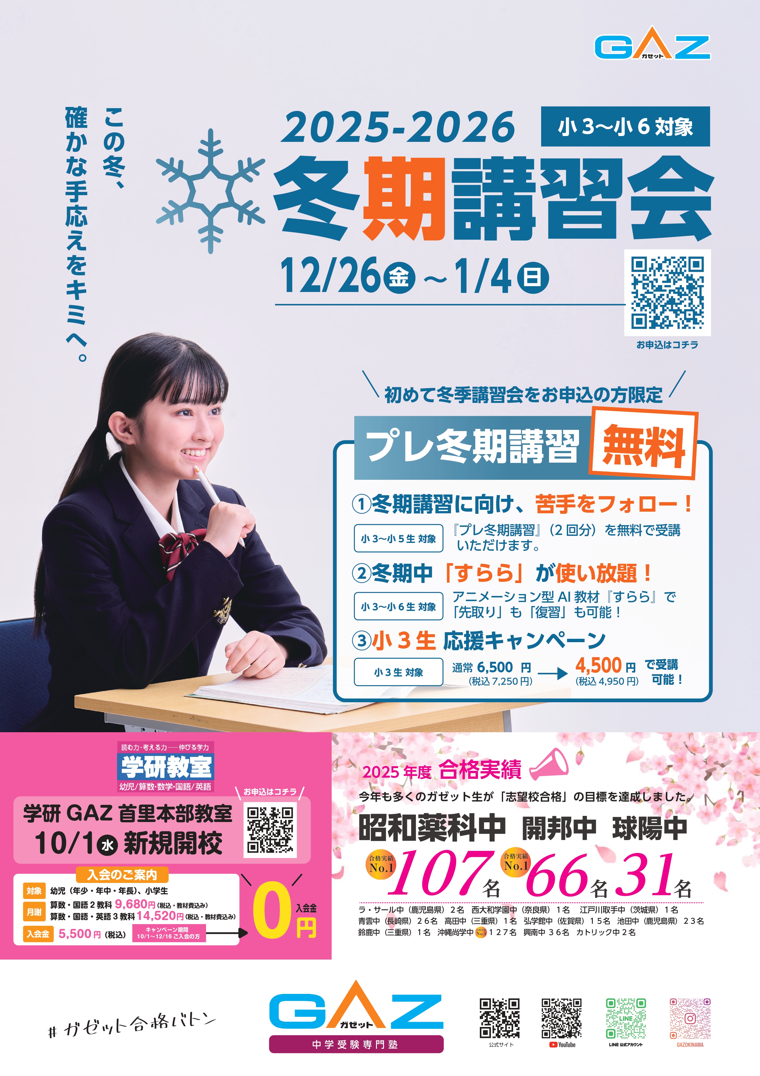 ガゼット各教室で実施します。開講内容は各教室で異なります。時間割や教室へのアクセスはHPをご覧ください。