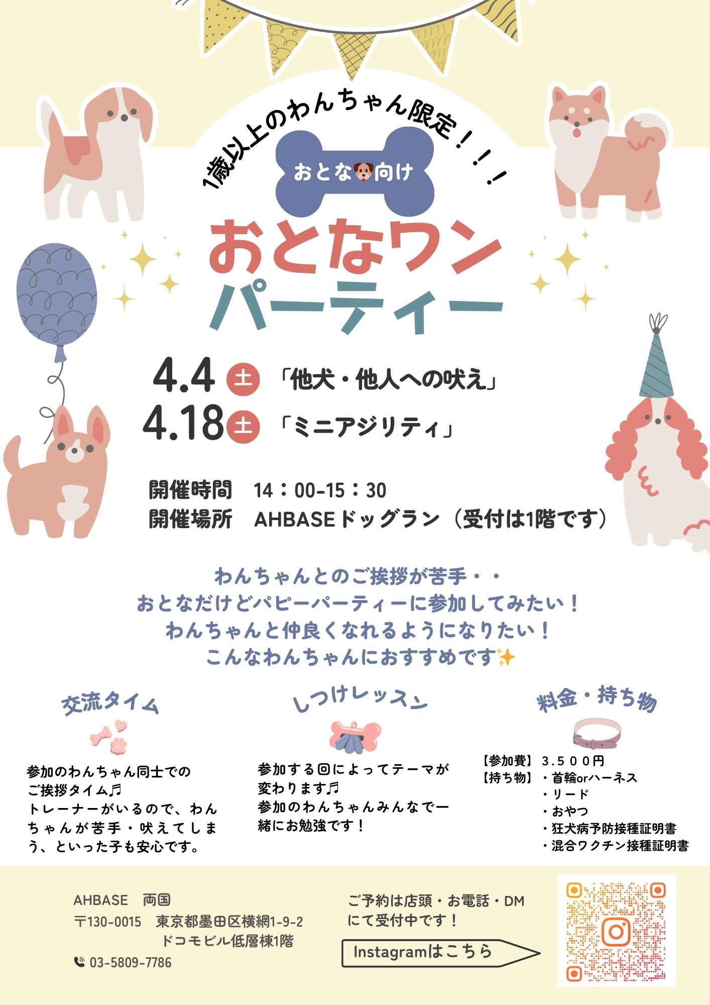 ○参加費:税込3,500円(同居犬に限り2頭目参加🉑+2,000円)