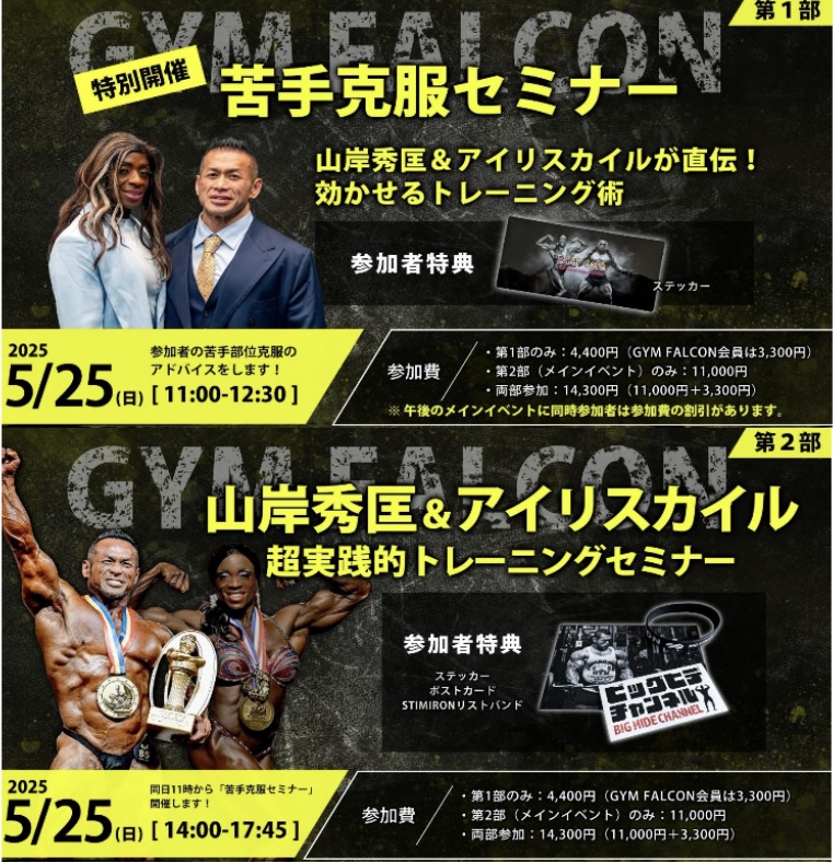山岸秀匡とアイリス・カイル、2人のボディビル界のレジェンドによる超実践的なトレーニングセミナーを開催!